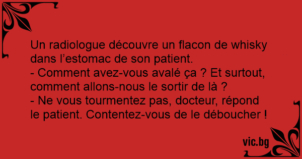 - Ne vous tourmentez pas, docteur, répond le patient. Contentez-vous de le déboucher !