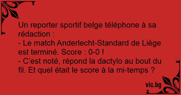 Un reporter sportif belge téléphone à sa rédaction :