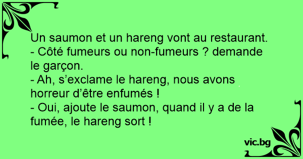 - Ah, s’exclame le hareng, nous avons horreur d’être enfumés !