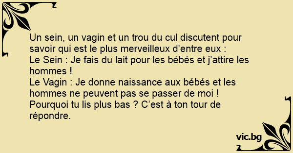Un sein, un vagin et un trou du cul discutent pour savoir qui est le plus merveilleux d’entre eux :