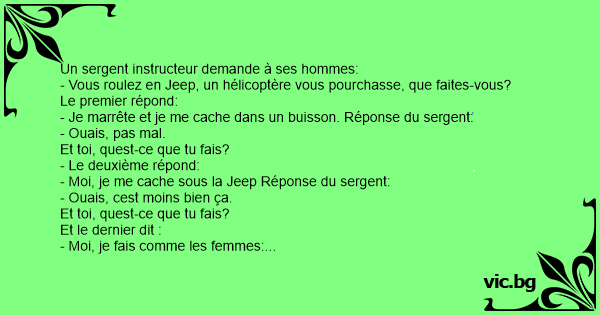 - Moi, je me cache sous la Jeep Réponse du sergent: