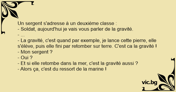 - Soldat, aujourd'hui je vais vous parler de la gravité.