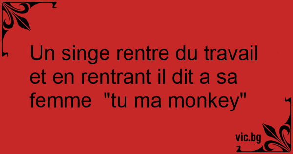 Un singe rentre du travail et en rentrant il dit a sa femme "tu ma monkey"