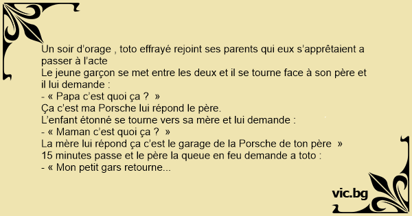 La mère lui répond ça c’est le garage de la Porsche de ton père »
