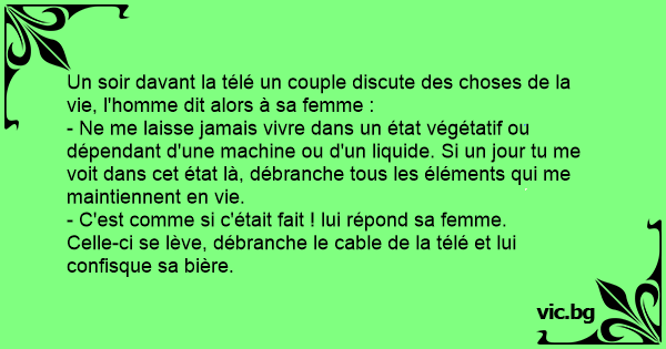 Un soir davant la télé un couple discute des choses de la vie, l'homme dit alors à sa femme :