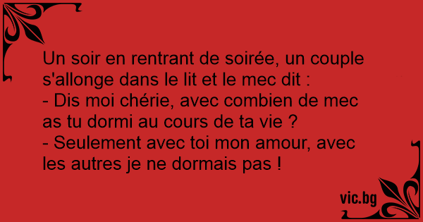 Un soir en rentrant de soirée, un couple s'allonge dans le lit et le mec dit :