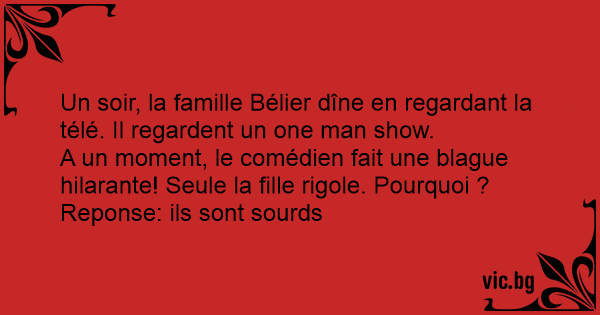 Un soir, la famille Bélier dîne en regardant la télé. Il regardent un one man show.