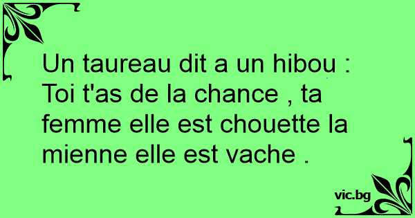Toi t'as de la chance , ta femme elle est chouette la mienne elle est vache .
