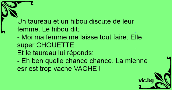 Un taureau et un hibou discute de leur femme. Le hibou dit: