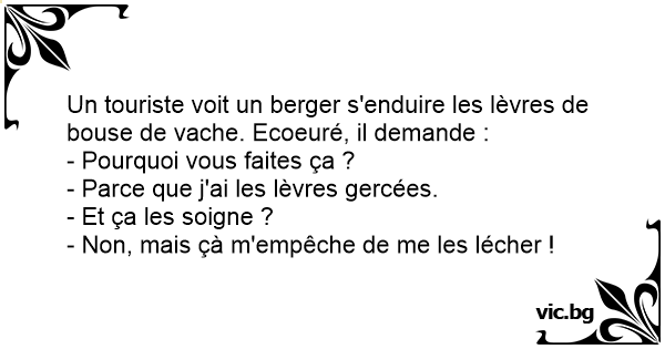 Un touriste voit un berger s'enduire les lèvres de bouse de vache. Ecoeuré, il demande :