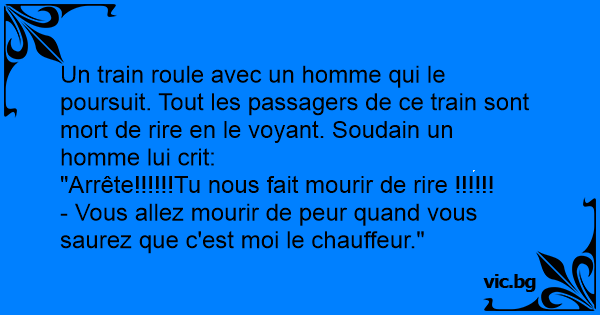 Un train roule avec un homme qui le poursuit. Tout les passagers de ce train sont mort de rire en le voyant. Soudain un homme lui crit:
