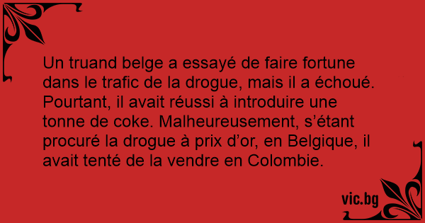 Un truand belge a essayé de faire fortune dans le trafic de la drogue, mais il a échoué. Pourtant, il avait réussi à introduire une tonne de coke. Malheureusement, s’étant procuré la drogue à prix d’or, en Belgique, il avait tenté de la vendre en Colombie.
