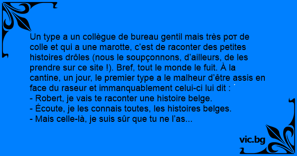 - Robert, je vais te raconter une histoire belge.