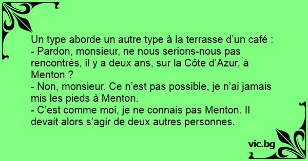 - Non, monsieur. Ce n’est pas possible, je n’ai jamais mis les pieds à Menton.