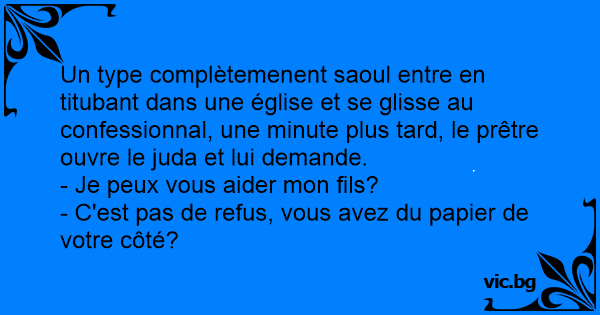 Un type complètemenent saoul entre en titubant dans une église et se glisse au confessionnal, une minute plus таrd, le prêtre ouvre le juda et lui demande.