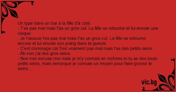- T'es pas mal mais t'as un gros cul. La fille se retourne et lui envoie une claque.