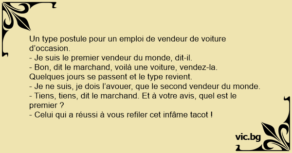 - Bon, dit le marchand, voilà une voiture, vendez-la.