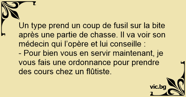 Un type prend un coup de fusil sur la bite après une partie de chasse. Il va voir son médecin qui l’opère et lui conseille :