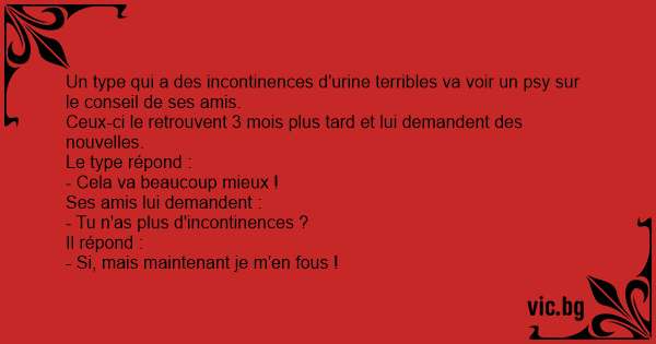 Un type qui a des incontinences d'urinе terribles va voir un psy sur le conseil de ses amis.