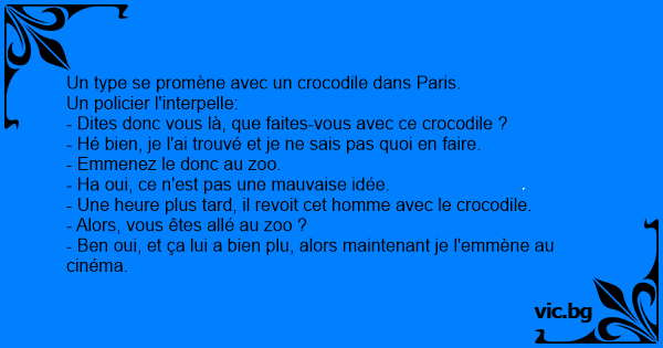 - Dites donc vous là, que faites-vous avec ce crocodile ?