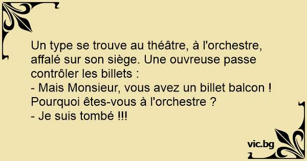 - Mais Monsieur, vous avez un billet balcon ! Pourquoi êtes-vous à l'orchestre ?