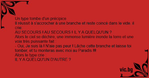 - Oui, Je suis là ! N'aie pas peur ! Lâche cette branche et laisse toi tomber, et tu monteras avec moi au Paradis !!!