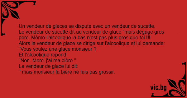 Le vendeur de sucette dit au vendeur de glace "mais dégаgе gros porc. Même l'alcoolique la bas n'est pas plus gros que toi !!!