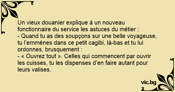 Un vieux douanier explique à un nouveau fonctionnaire du service les astuces du métier :