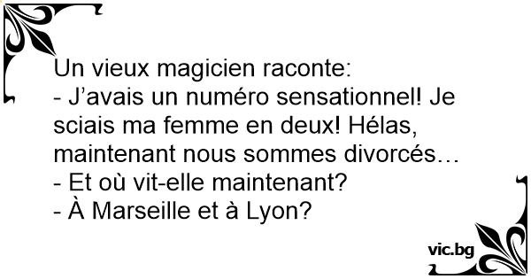 - J’avais un numéro sensationnel! Je sciais ma femme en deux! Hélas, maintenant nous sommes divorcés…