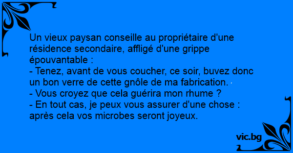 Un vieux paysan conseille au propriétaire d'une résidence secondaire, affligé d'une grippe épouvantable :
