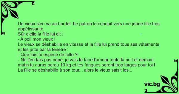 Un vieux s'en va au bordel. Le patron le conduit vers une jeune fille très appétissante.