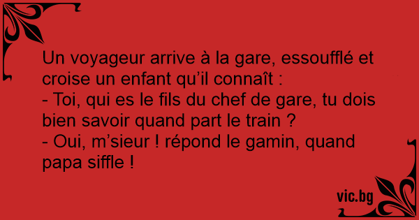 - Toi, qui es le fils du chef de gare, tu dois bien savoir quand part le train ?