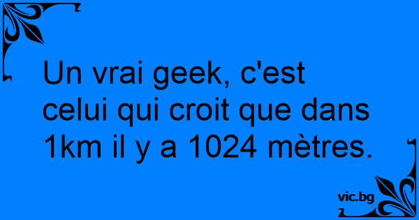 Un vrai geek, c'est celui qui croit que dans 1km il y a 1024 mètres.