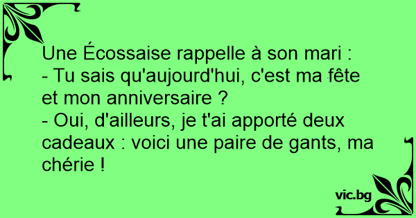 - Oui, d'ailleurs, je t'ai apporté deux cadeaux : voici une paire de gants, ma chérie !