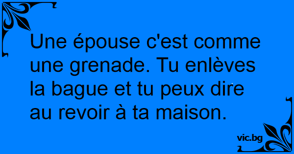 Une épouse c'est comme une grenade. Tu enlèves la bague et tu peux dire au revoir à ta maison.