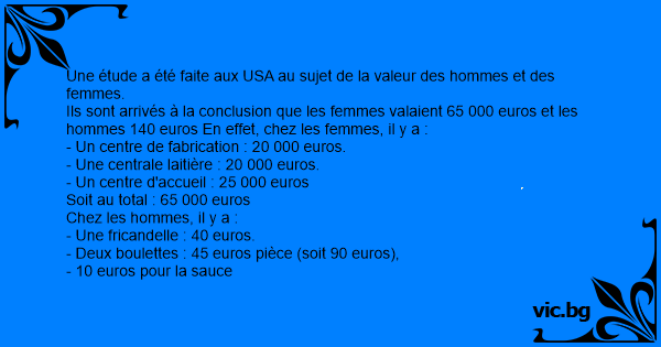 Une étude a été faite aux USA au sujet de la valeur des hommes et des femmes.