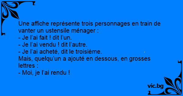 Une affiche représente trois personnages en train de vanter un ustensile ménager :