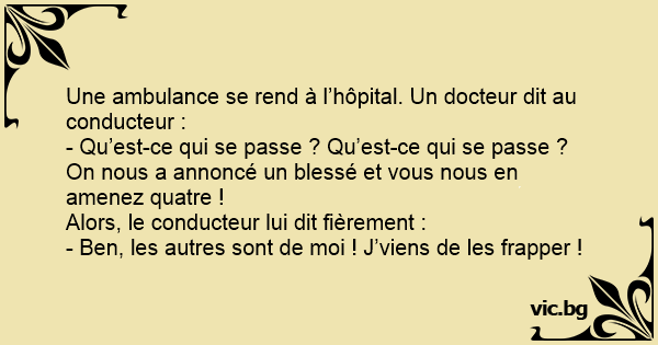 Une ambulance se rend à l’hôpital. Un docteur dit au conducteur :