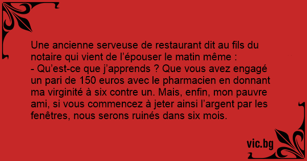 Une ancienne serveuse de restaurant dit au fils du notaire qui vient de l’épouser le matin même :
