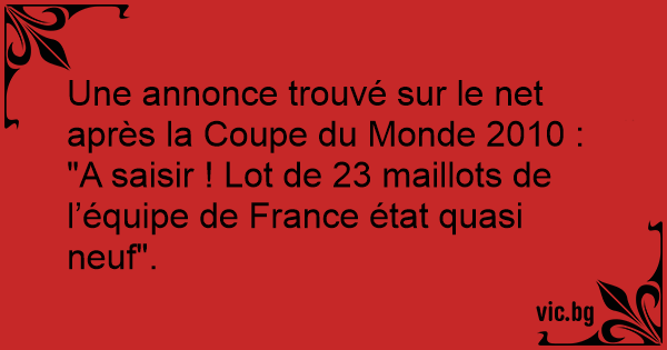 Une annonce trouvé sur le net après la Coupe du Monde 2010 :