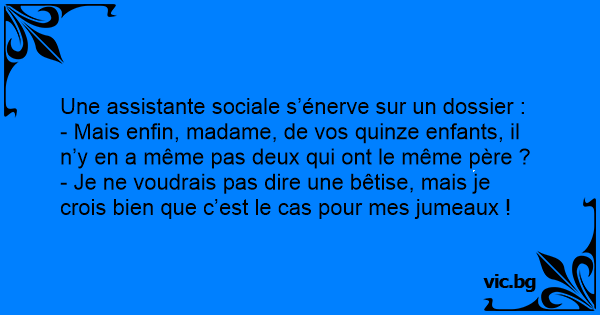 - Mais enfin, madame, de vos quinze enfants, il n’y en a même pas deux qui ont le même père ?