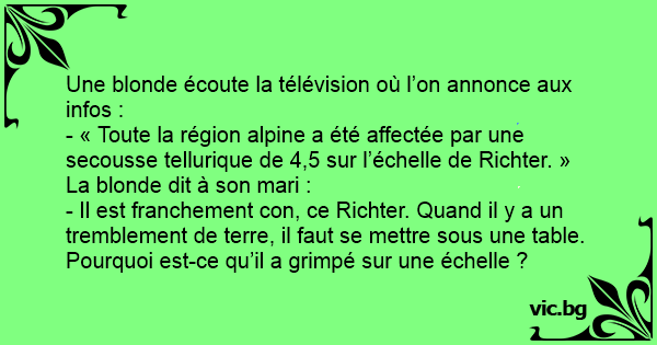- Il est franchement соn, ce Richter. Quand il y a un tremblement de terre, il faut se mettre sous une table. Pourquoi est-ce qu’il a grimpé sur une échelle ?