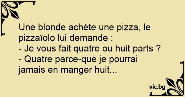 Une blonde achète une pizza, le pizzaïolo lui demande :