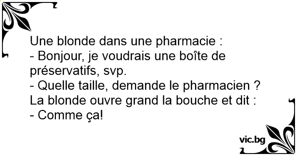 - Bonjour, je voudrais une boîte de préservatifs, svp.