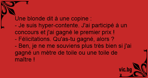- Je suis hyper-contente. J'ai participé à un concours et j'ai gagné le premier prix !