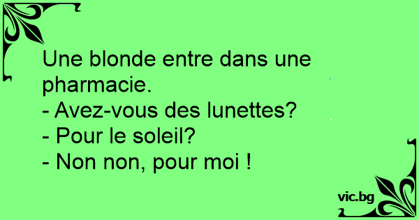 Une blonde entre dans une pharmacie.