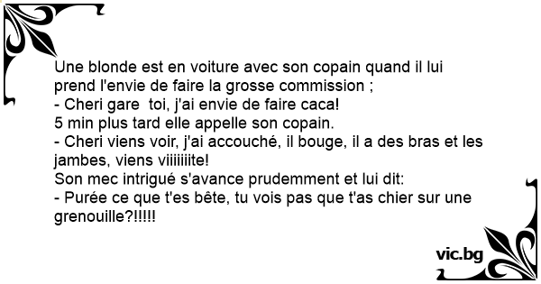 Une blonde est en voiture avec son copain quand il lui prend l'envie de faire la grosse commission ;