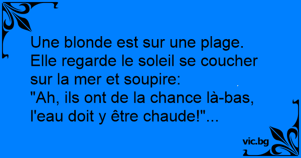 Une blonde est sur une plage. Elle regarde le soleil se coucher sur la mer et soupire: