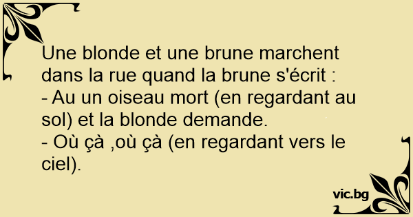 Une blonde et une brune marchent dans la rue quand la brune s'écrit :