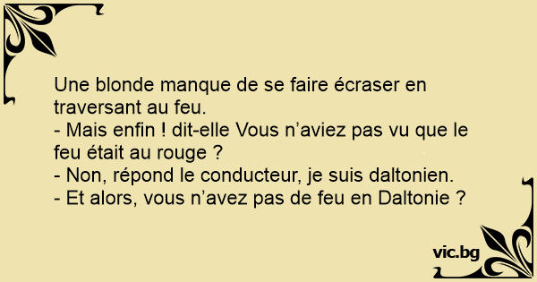 - Non, répond le conducteur, je suis daltonien.